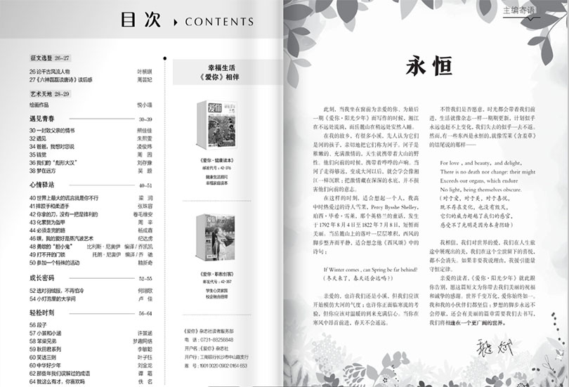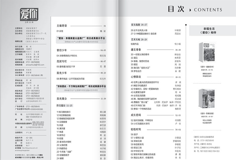 该杂志的内容涵盖了广泛的领域,包括心理健康、生理健康、人际关系、家庭生活、职场生涯、时尚美容等。通过深入浅出的文章和生动的案例,帮助读者了解自己和他人,提高生活质量。在心理健康方面,杂志提供了许多实用的建议和技巧,如如何应对焦虑、抑郁等心理问题,如何提升自信心和情绪管理能力。在生理健康方面,该杂志关注各种常见疾病的预防和保健知识,如高血压、糖尿病等,同时也介绍了一些实用的健身和减肥方法。在人际关系方面,《爱你》杂志关注夫妻、家庭、朋友之间的相处之道,通过案例分析和专家建议,帮助读者建立更加和谐的人际关系。在家庭生活方面,该杂志提供了许多实用的家居装修、育儿技巧和家庭理财等方面的建议。